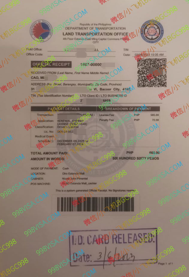 菲律宾驾驶证有效期是5年 如果不是第一次申请的有10年的 ,但是总是会过期的,过期的话需要更换,如果是中国人会麻烦一些因为需要面试和语言考试,如果没有顺利通过可能被注销,另外有一个问题就是很多中国人的驾驶证是中介办理的,中介办理都会使用假的认证材料等这样才能短时间获取驾驶证,也会在更新的时候被查到是假的 所以不能成功更新,有需要更新的找我们没有问题都能快速处理,想了解更多最新信息欢迎联系和咨询我们,微信:BGC998 电报@BGC998 Whats app:+63 912-0912-222 电话:0912-0912-222 优先使用TG免验证,咨询请主动告知咨询项目,菲律宾MAKATI 实体公司,客户 隐私保护 安全 可靠,可以安排工作人员上门取件或前往我们办公室提交办理业务。