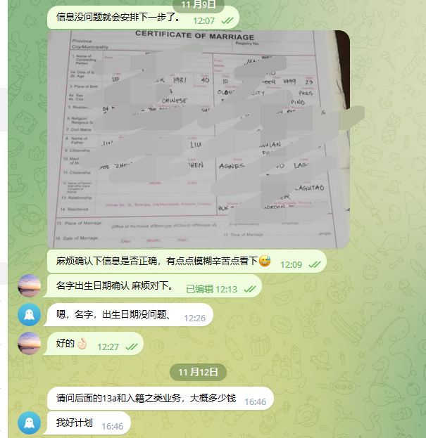 psa结婚证批量出 市政厅结婚证:不用本人到场,手续极简。统计局结婚证:不用本人到场。结婚证外交部认证: 不用本人到场。 结婚证大使馆认证: 不用本人到场。菲律宾人探亲签: 不用本人到场。全套授权办理,无需单身证明,无需财产证明,无需婚礼要求,无需牧师,无需护照原件。 全套一条龙处理好,本人在大陆,第三国都可以办理。想了解更多最新信息欢迎联系和咨询我们,微信:BGC998 电报@BGC998 Whats app: 0912-0912-222 优先使用TG免验证,咨询请主动告知咨询项目,菲律宾MAKATI 实体公司,客户 隐私保护 安全 可靠,可以安排工作人员上门取件或前往我们办公室提交办理业务。