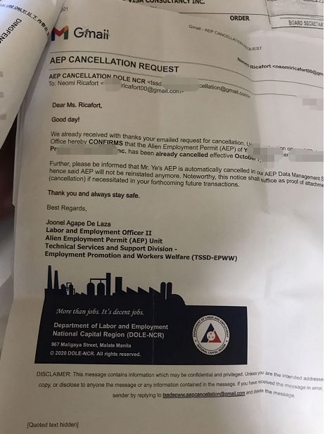 We process:1. 9G Working Visa2. 13A / TRV Spousal Visa- married to a Filipino citizen3. Downgrading of Visa4. Tourist Visa Extension5. Alien Employment Permit (AEP) / Special Working Permit (SWP)6. Inclusion of dependent Spouse and unmarried child7. Emigration Clearance Certificate (ECC)8. Cancellation of Alien Employment Permit9. Cancellation of CEZA Working Visa (CWV)10. Cancellation of 9G Working Visa (9G)11. AEP card replacement (loss AEP)12. Quota Visa13. Overstay14. Lifting of Blacklist(BL) and Hold Departure Order (HDO)15. Order To Leave (OTL) & other Immigration related concern!For faster inquiries feel free to contact us: WeChat : BGC998 WhatsApp :+63-912-0912-222 Telegram :@BGC998 EMAIL: 998VISA@GMAIL.COM