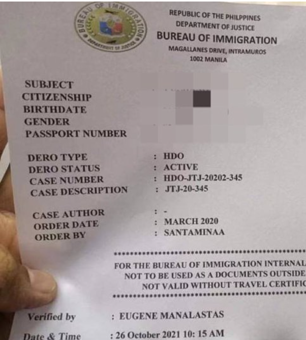 是由法院给移民局下达的禁止犯罪嫌疑人离境的命令。
