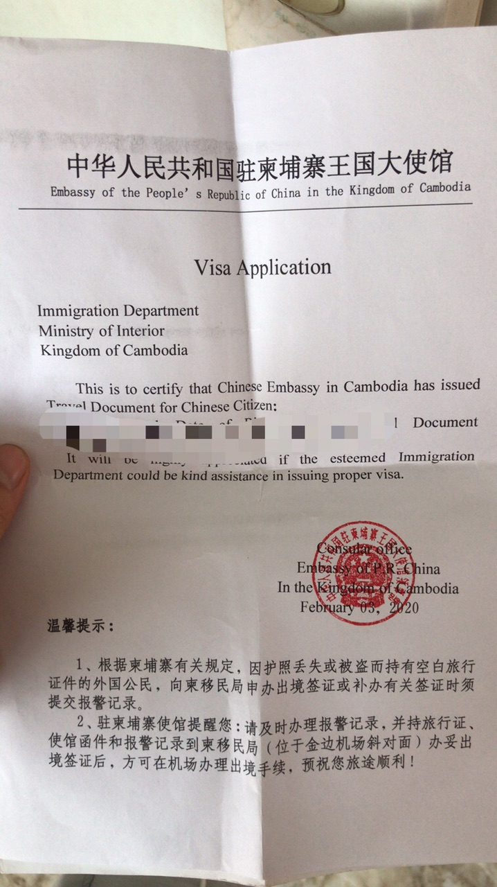 由于COVID-19大流行造成的情况,截至2020年3月,您再也不能在网上或抵达时获得柬埔寨签证。所有柬埔寨签证现在只在柬埔寨驻外使领馆签发,期限不确定。与越南、老挝和泰国的边境已经关闭。此外,如果你去柬埔寨旅行,你必须携带以下文件:
