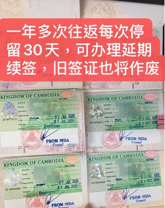 延长30天以上的柬埔寨签证是多次入境签证。。
