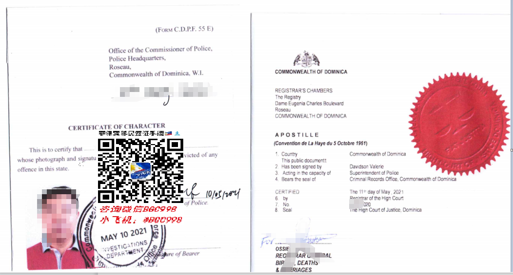 专业代办多米尼克公民无犯罪证明 带海牙认证国际承认,