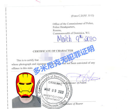 多米尼克无犯罪证明代办成功案例
