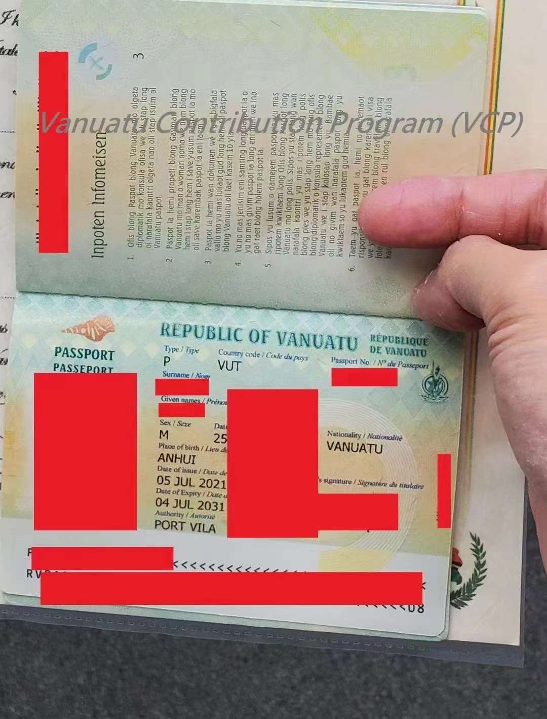 2021.7月恭喜安徽 胡先生获取瓦国国籍