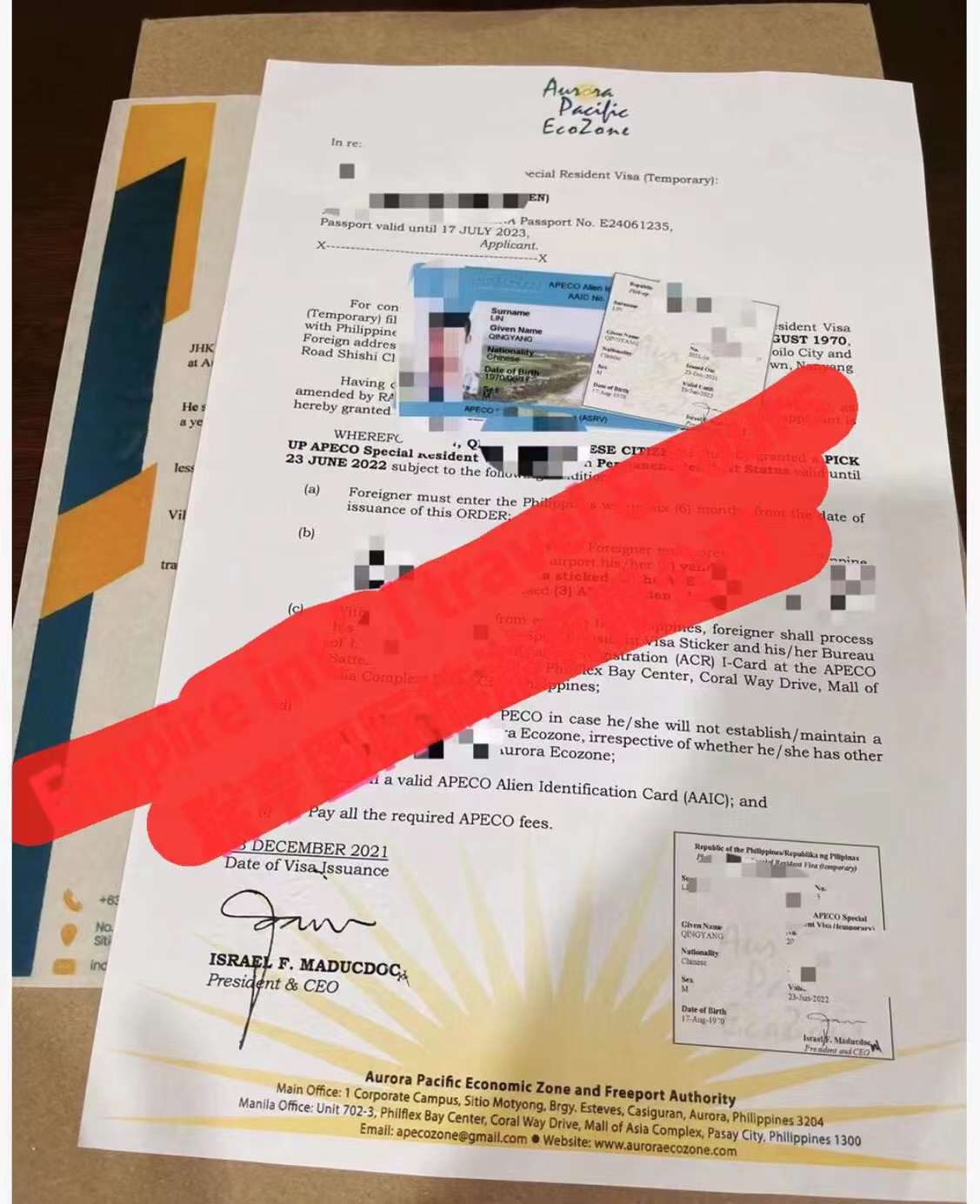 2022.01月 恭喜林先生获签菲律宾小特赦ASRV