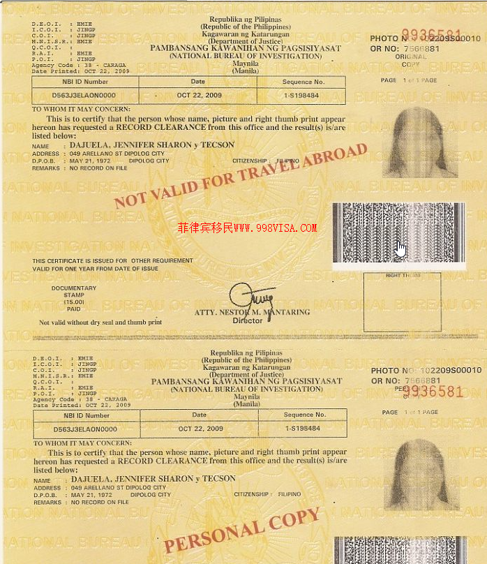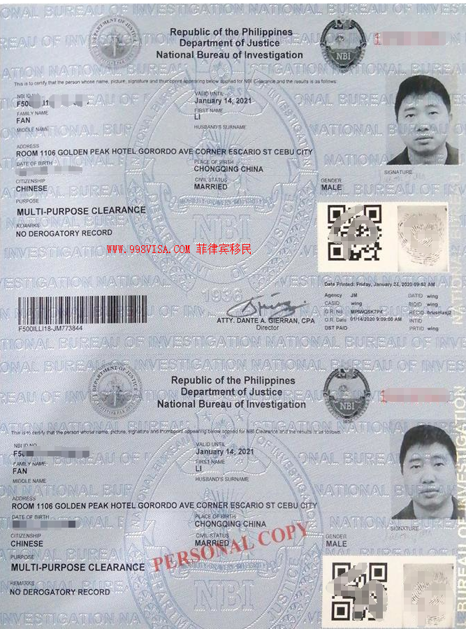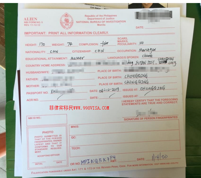 4,对于办了菲律宾入籍护照的客户来说,要去NBI去办理菲律宾良民证
