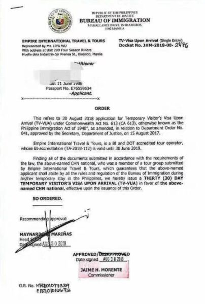2.由菲律宾政府授权指定的旅行社进行接待的个体中国游客。