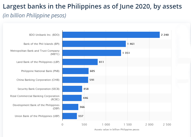 根据菲律宾央行统计的资产排名前10的菲律宾银行
