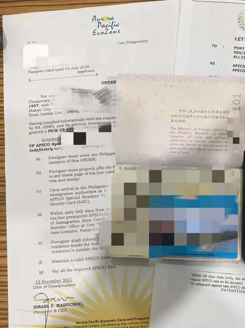 12、目前受理不需要出生地无犯罪记录。最重要的是,人不在菲律宾也可以办理! 此项目于2016开始,但是针对日本人和韩国人开放。但是2019年开始,中国籍也可以申请了。目前Aurora经济特区在移民局(BI)和劳工署(DOLE)承认的签证种类为以下几种:1、APECO Special Resident Visa (ASRV); APECO特殊居民签证 就是小特赦2、APECO Special Investor’s Resident Visa (ASIV); APECO特殊投资居民签证3、 APECO Working Visa (AWV); APECO工作签证4、APECO Dependent’s Visa (ADV); APECO家属签证5、APECO Special Work Permit (APECO-SWP); APECO特殊工作许可6、APECO Provisional Work Permit (APECO-PWP); APECO临时工作许可7、APECO Alien Identity Card (AAIC)。APECO外国人身份卡其中我们主要需要详细了解的是ASRV,ASIV,ADV。ASIV基础申请条件:A: 菲律宾经济特区投资金额:
