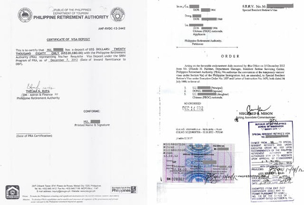 菲律宾SRRV签证即是一个简单有效的中转身份。办理好菲律宾退休移民(SRRV)之后,移民局所发签证为另纸签证,不贴在中国护照上,而是直接贴到一张A4 纸上。签证的有效期为永久。因此这张纸是不需要换发的。菲律宾出入境移民局接受在该纸的复印件上盖出入菲律宾的章。SRRV另纸签证如下图