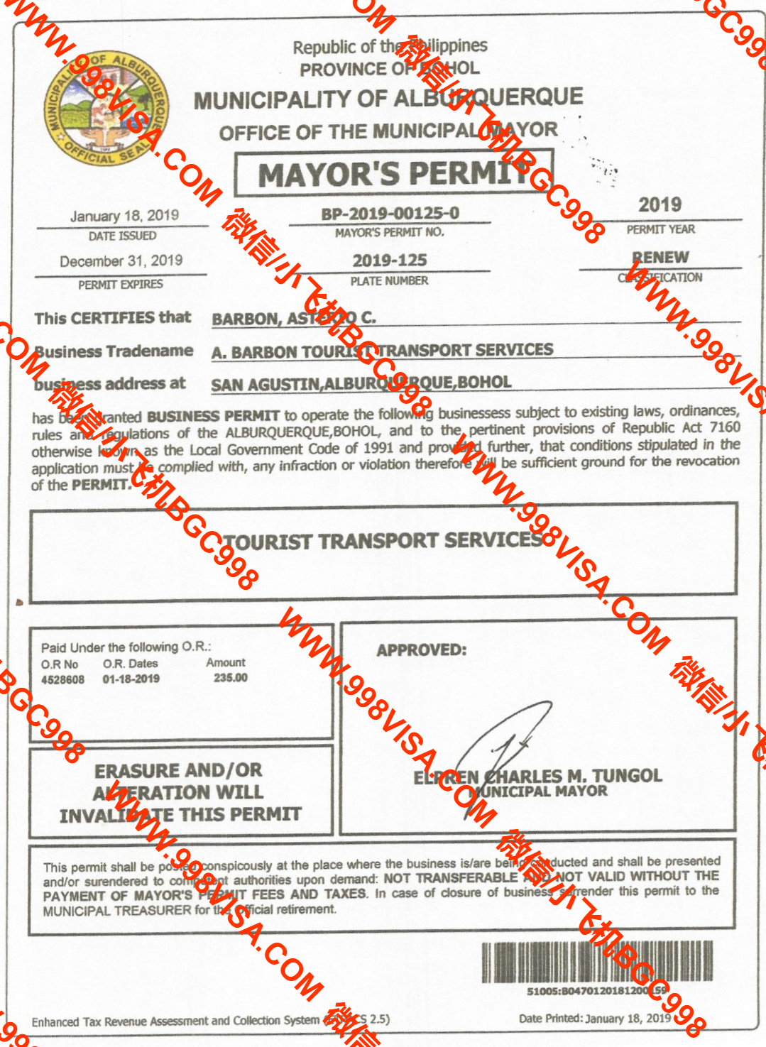 这.......可就太多样了,因为他们营业执照是市长办公室签署开出来的,也就是每个城市是可以有自己独有风格的,甚至上面还会有市长照片,但是万变不离齐其宗的就是:它一定是带有”BUSINESS PERMIT”字样。