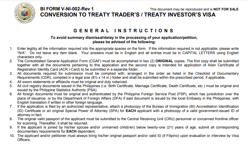 持有该签证的条约商人或条约投资者,可以按照签证的时间期限内,无限次数出入境和停留菲律宾。 满足该签证的条件如下: 您必须来菲律宾:
