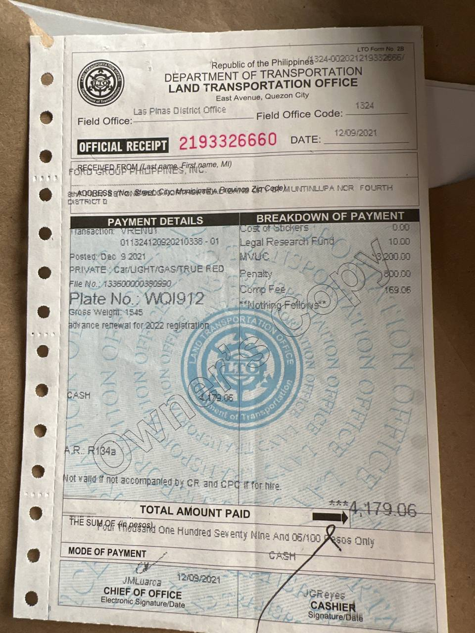 ⚫️LTO交通局年检MVUC费用 OR发票 : 实际OR价格