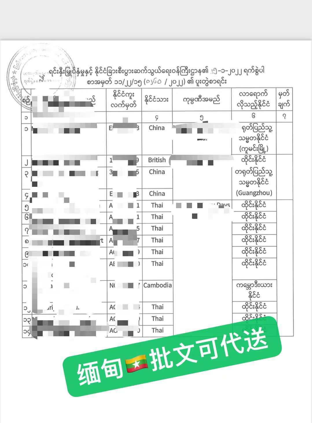 缅甸入境批文快速办理