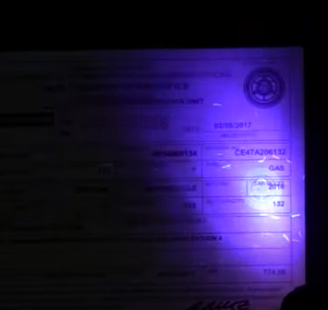 11  OR的 号码 在紫外灯照射下 也有不同的反应  号码会有荧光反应