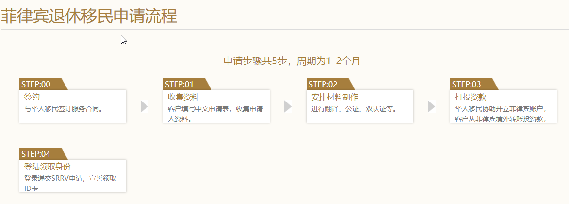 | 申请费 | 菲律宾退休移民署 | 主申请人:1,400 美元 配偶:300 美元 ≤18周岁子女:300 美元 | 递交时 | 不可退 |