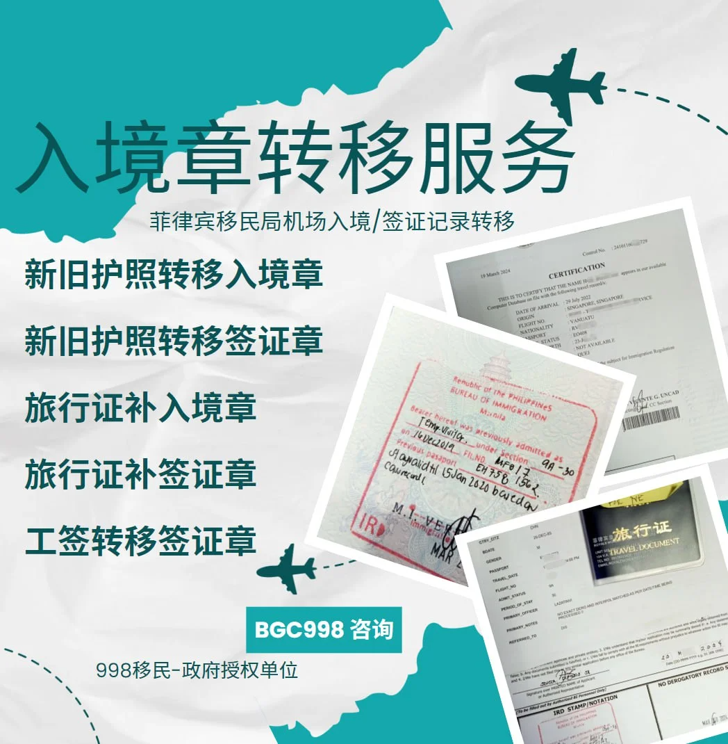 菲律宾移民局要求出入境必须有完整的身份材料才能出入境畅通无阻,一般需要的材料是护照原件,且有效期大于六个月,有菲律宾的ICARD 身份证,合法的身份证才能顺利进出菲律宾,护照上该有有效签证贴纸或者印章,持有有效签证的批文 order,所以丢失护照,新旧护照一起用的 需要去转移签证记录章和入境记录章,丢失ORDER的需要补办order,丢失ICARD 也需要补办ICARD ,有需要的可以联系我们, 需要更多信息和咨询请联系我们,微信:BGC998 电报 @WOW888 或 @BGC998 由于业务咨询量比较多,为了节约您的宝贵时间,咨询请主动告知咨询业务和问题,菲律宾998华人顾问 是菲律宾MAKATI 实体注册公司,在菲律宾已经有超过18年服务经验,客户 隐私安全保护服务可靠,业务提交可以安排工作人员上门取件或前往我们办公室提交 。