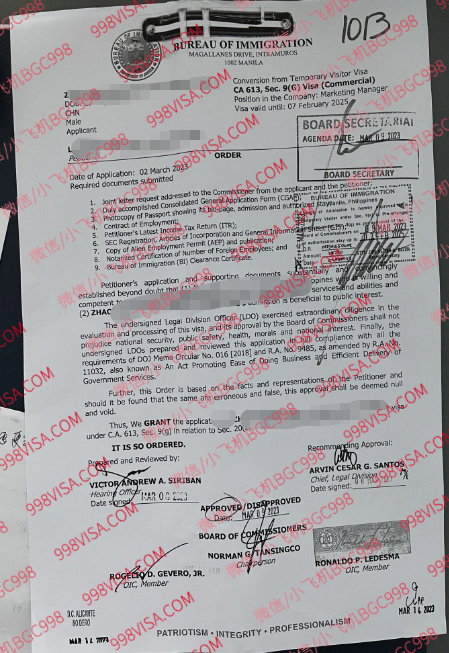 We process:1. 9G Working Visa2. 13A / TRV Spousal Visa- married to a Filipino citizen3. Downgrading of Visa4. Tourist Visa Extension5. Alien Employment Permit (AEP) / Special Working Permit (SWP)6. Inclusion of dependent Spouse and unmarried child7. Emigration Clearance Certificate (ECC)8. Cancellation of Alien Employment Permit9. Cancellation of CEZA Working Visa (CWV)10. Cancellation of 9G Working Visa (9G)11. AEP card replacement (loss AEP)12. Quota Visa13. Overstay14. Lifting of Blacklist(BL) and Hold Departure Order (HDO)15. Order To Leave (OTL) & other Immigration related concern!For faster feel free to contact us:English inquiries :WeChat : rcello WhatsApp :+63 915 831 7730 Telegram :@raquel EMAIL: 998VISA@GMAIL.COM TEL:(+632) 84030023中文咨询:微信 : BGC998 WhatsApp :+63-912-0912-222 电报/小飞机:@BGC998 邮件咨询: 998VISA@GMAIL.COM